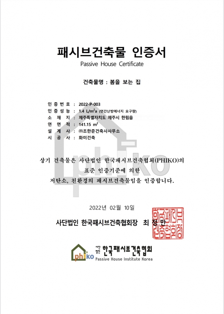 인증서 제 목 내 용 제목 + 내용 작성자 아이디 검색 13 2022 양평군 신론리 패시브주택 12 2022 제주협재 패시브주택 11 2021 세종아름동 표준주택04호 10 2021 세종 금암리 패시브하우스 9 2021 청주시 패시브주택 8 2020 여주능서 표준주택 시즌2 1호 7 2020 동두천패시브주택 6 2019 제주한림읍표준주택20호 5 2017 횡성 표준주택16호 4 2017성주백운리패시브주택 3 2016 세종표준주택9호 2 2016 세종 표준주택8호 1 2 3 리스트